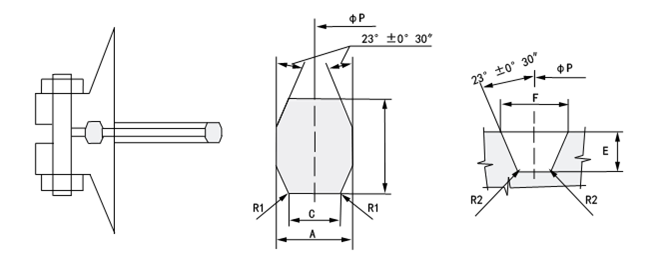 墊片安裝在法蘭面的梯型環槽內,當擰緊連接螺栓時,受軸向壓縮與上下梯型槽帖緊,產生塑性變形,形成一環狀密封帶,建立初始密封。升壓后,在介質壓力的作用下,使環墊徑向擴張。墊片與梯形槽的斜面更加帖緊,產生自緊作用。但是,介質壓力的升高同樣會使法蘭和連接螺栓變形,造成成密封面間的相對分離,墊片密封比相對下降,因而,環墊可以認為是半自緊密封。